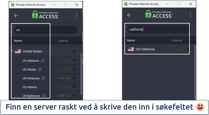 Når VPN-en er installert, må du finne serveren du ønsker. De beste VPN-ene har intuitive brukergrensesnitt med et stort kart eller serverliste som er synlig rett etter innlogging. Det er viktig å velge riktig land for å få sikker tilgang til nødvendige tjenester. For eksempel er Paramount+ hovedsakelig tilgjengelig i USA, så du må ha en amerikansk IP-adresse for å få tilgang på en sikker måte.